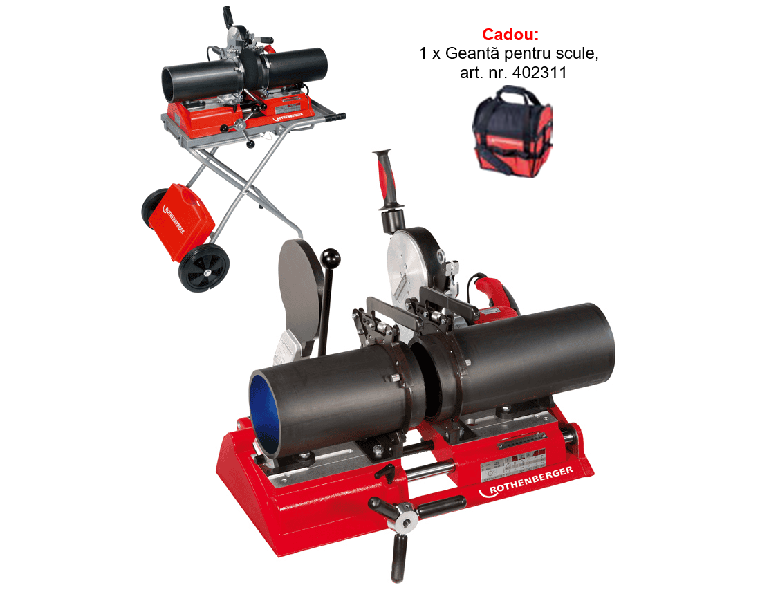Aparatul manual de sudat cap-la-cap Rothenberger ROWELD P160 SANILINE este prevazut cu plita detasabila, versatila in situatii dificile, pentru sudarea tevilor si fitingurilor preformate din PE, PP, PB si PVDF.